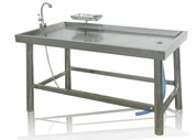 結(jié)構(gòu):器械盤可調(diào)升降,整體可拆裝。臺面與四周擋水沿為一整體,保持了操作面終身無泄露。配備固定上水和活動上水,利于臺面的清洗。下水口低于臺面水平面,能確保臺面污物、污水處理干凈.